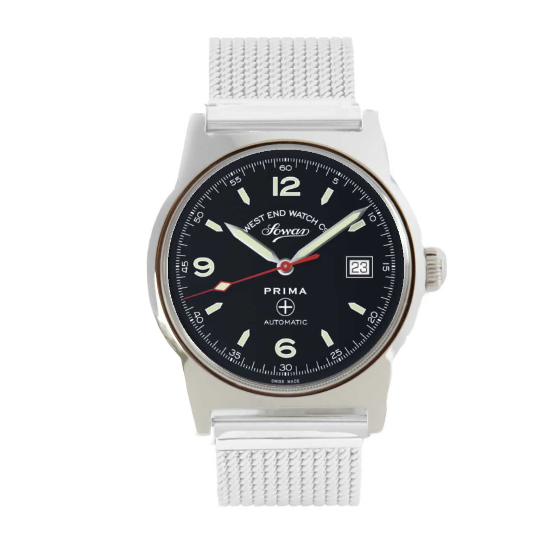This refined update of West End’s iconic bestseller, which has sold millions, the New 8152 collection is crafted to the highest standards of quality and precision. It retains hallmark elements of the brand?s military heritage, including luminescent numerals, the renowned adjustable stainless-steel bracelet, and the classic 1920s-inspired case design. With its 39mm diameter, this watch blends timeless heritage with modern innovation, making it an elegant accessory suitable for both formal events and everyday wear. Available in three distinct versions, each dial is a faithful reproduction of historic military designs, enhanced with contemporary upgrades. The unique box-shaped sapphire glass mimics the vintage plastic lenses of the past.