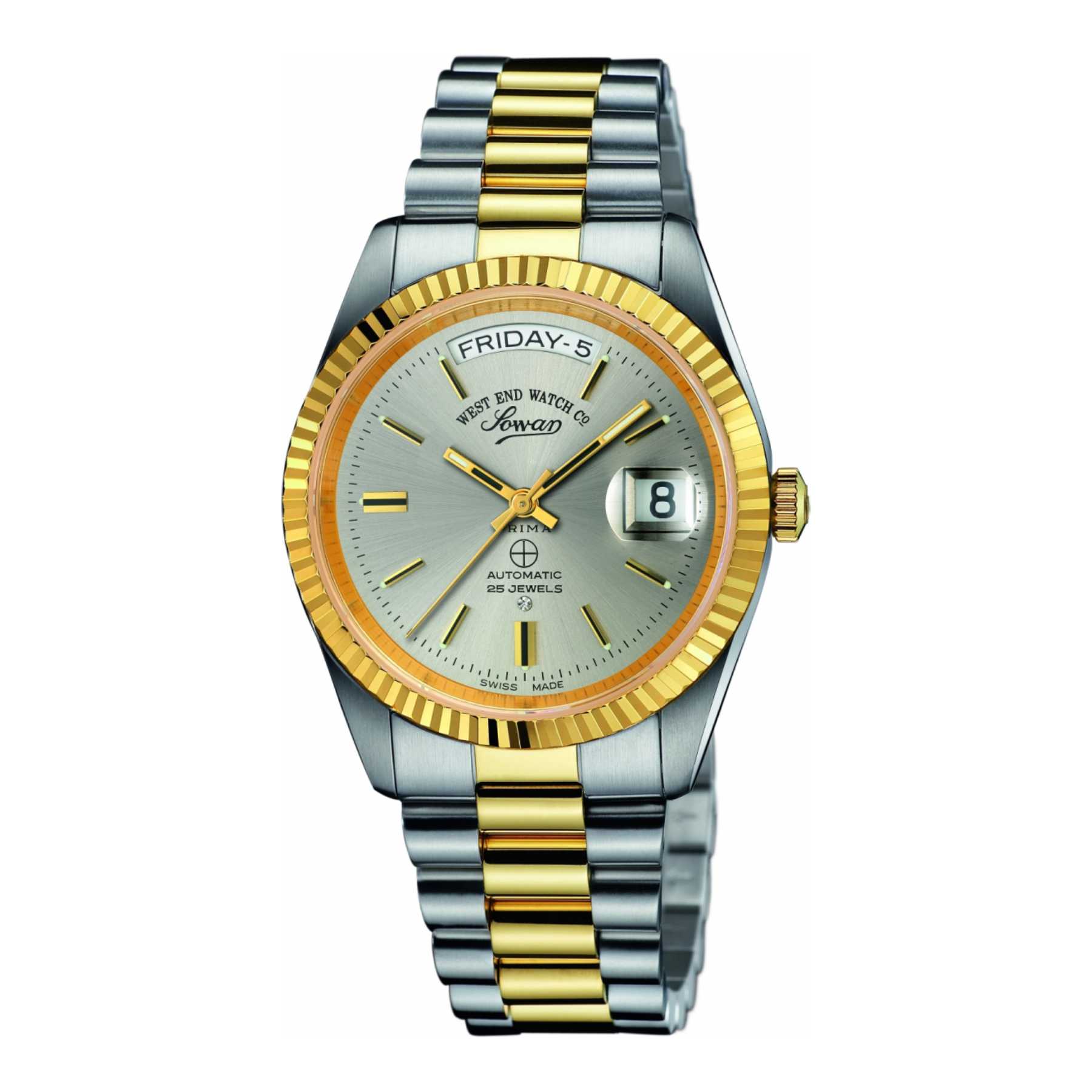 The West End 37mm unisex watch from The Classics collection combines elegance and functionality with its sleek sunray dark grey dial and sophisticated two-tone stainless steel strap. The silver case, paired with a striking gold bezel, adds a touch of luxury. Featuring an automatic movement, this round-shaped timepiece is perfect for those who appreciate timeless design and precision. Ideal for any occasion.