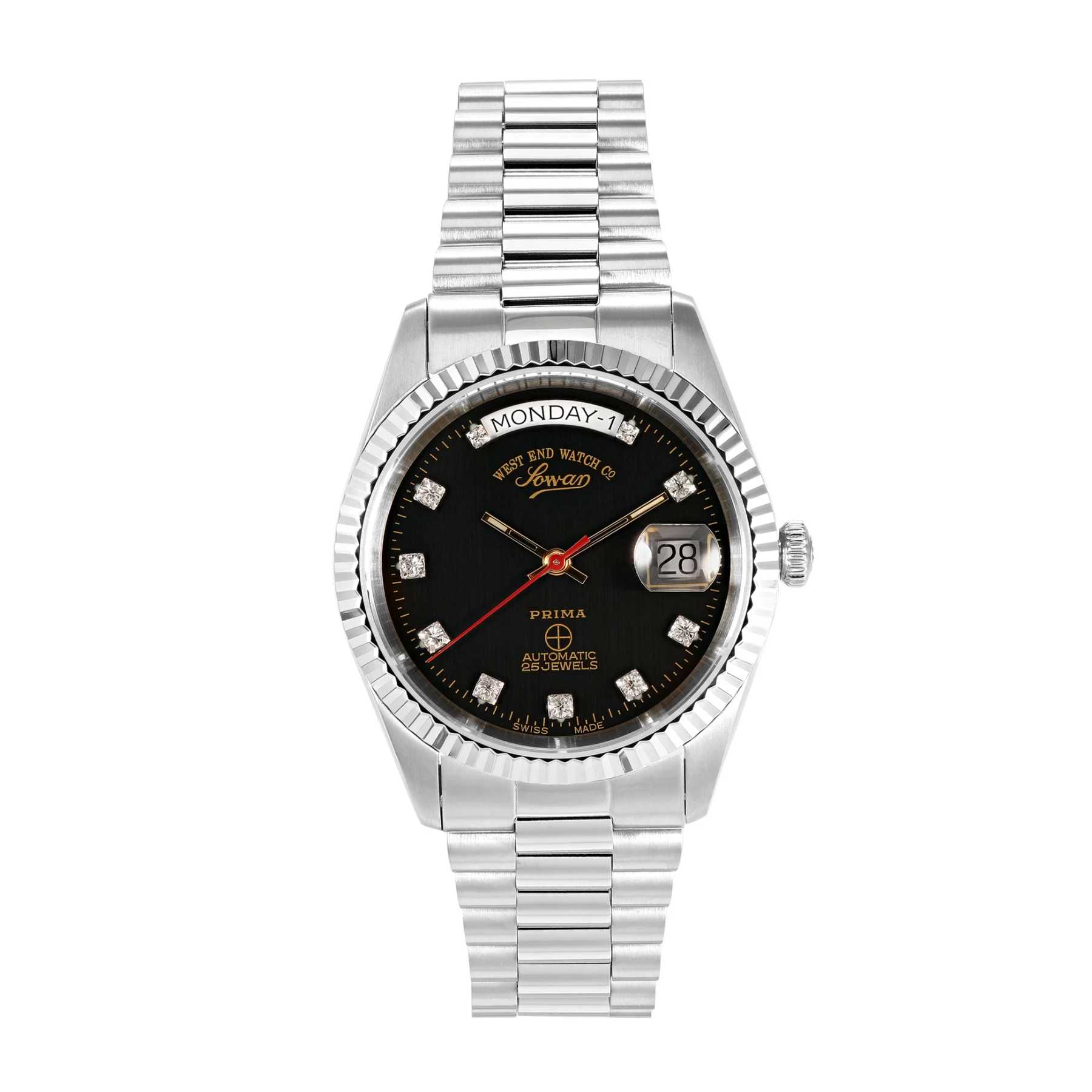 Timeless elegance meets modern design with the West End automatic watch, crafted for both men and women. With a sleek 37mm round stainless steel case, this watch features a stunning black dial adorned with sparkling zircon markers that add a touch of sophistication. The stainless steel strap offers durability and a refined look, while the automatic movement ensures accurate timekeeping without the need for a battery. Perfect for any occasion, this unisex timepiece is a versatile accessory that combines style and functionality.