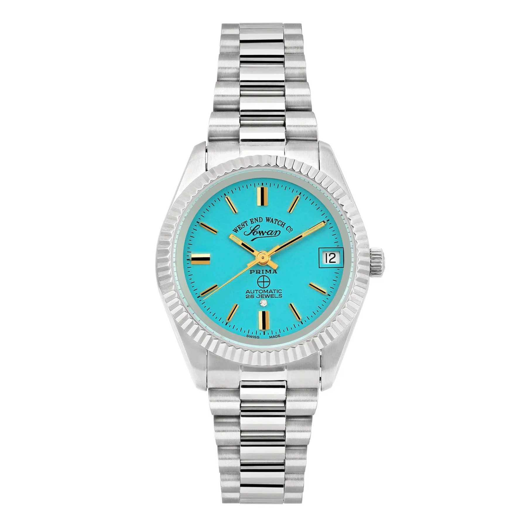 Introducing the West End Ladies Watch from The Classics collection?where timeless elegance meets refined design. This exquisite timepiece features a sleek 32 mm stainless steel case paired with a matching stainless steel bracelet for a cohesive, sophisticated look. The dial in a stunning turquoise shade serves as a bold yet tasteful backdrop, perfectly complementing the luminous gold indices that add a touch of warmth and luxury. Whether for day-to-day wear or special occasions, this watch is a stylish and enduring accessory that speaks to impeccable taste and classic appeal.