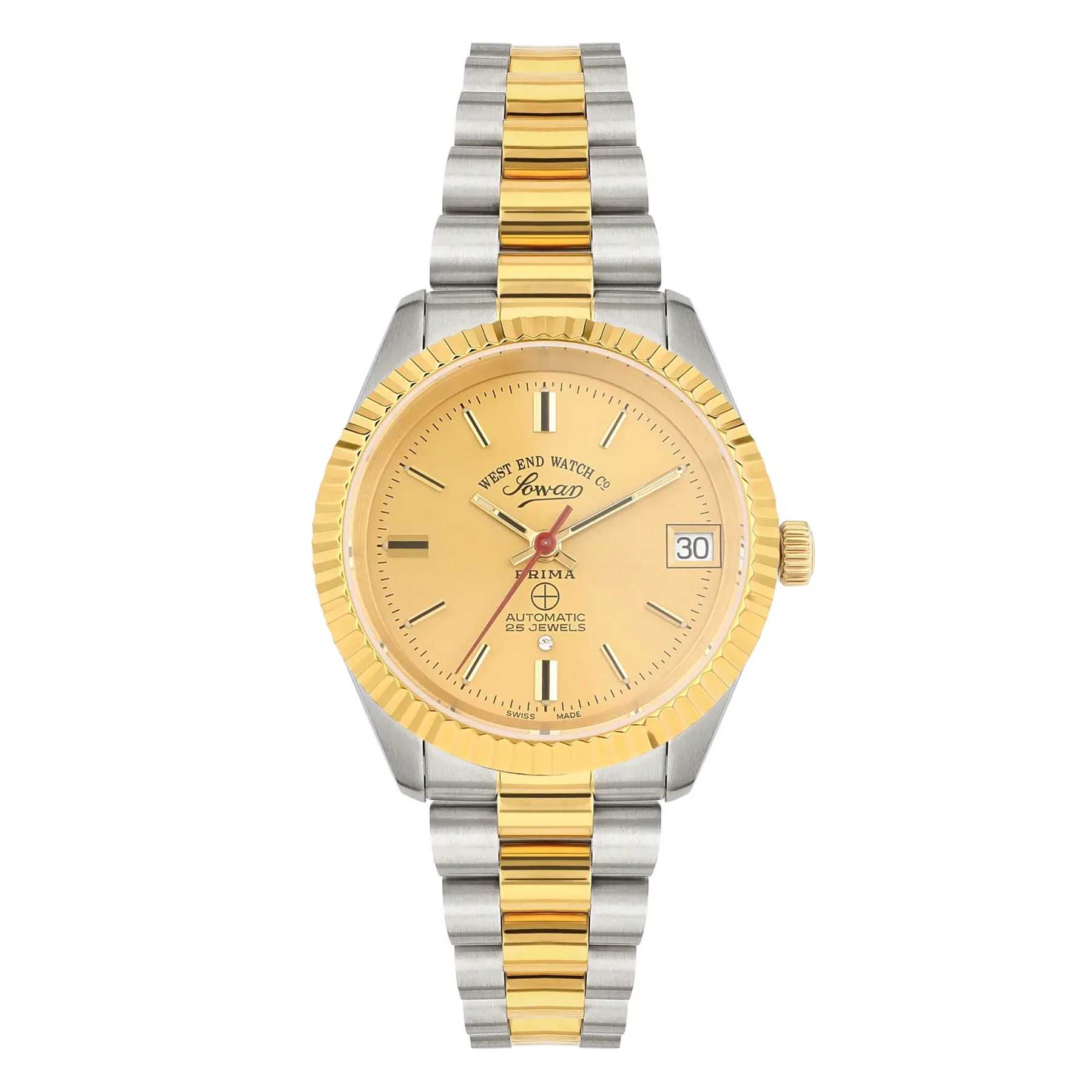 Discover timeless sophistication with the West End ladies watch from The Classics collection, designed for the modern woman who appreciates tradition with a touch of luxury. This elegant watch features a two-tone 32 mm stainless steel case and bracelet in silver and gold, combining versatility with chic style. The sunray champagne dial offers a warm, refined backdrop, accented by a date calendar magnified by flat sapphire glass for optimal clarity. Crafted with an automatic movement, this timepiece celebrates intricate engineering. Water-resistant up to 50 meters, this West End watch is both functional and fashionable?ideal for any occasion.